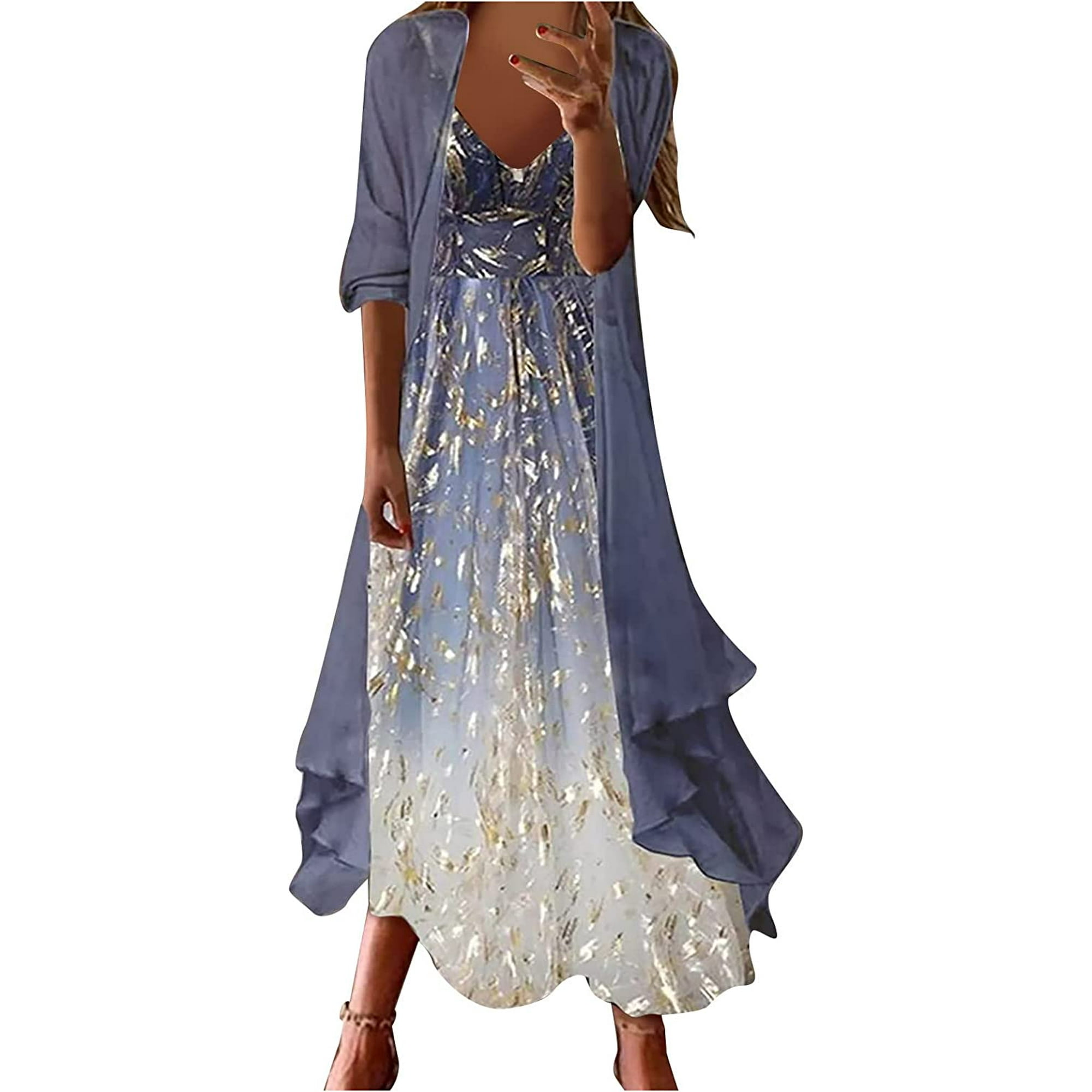 Plus Size Dress For Women Casual Fashion Print V Neck Two Piece Set 2022 Summer Maxi Dress Walmart Canada